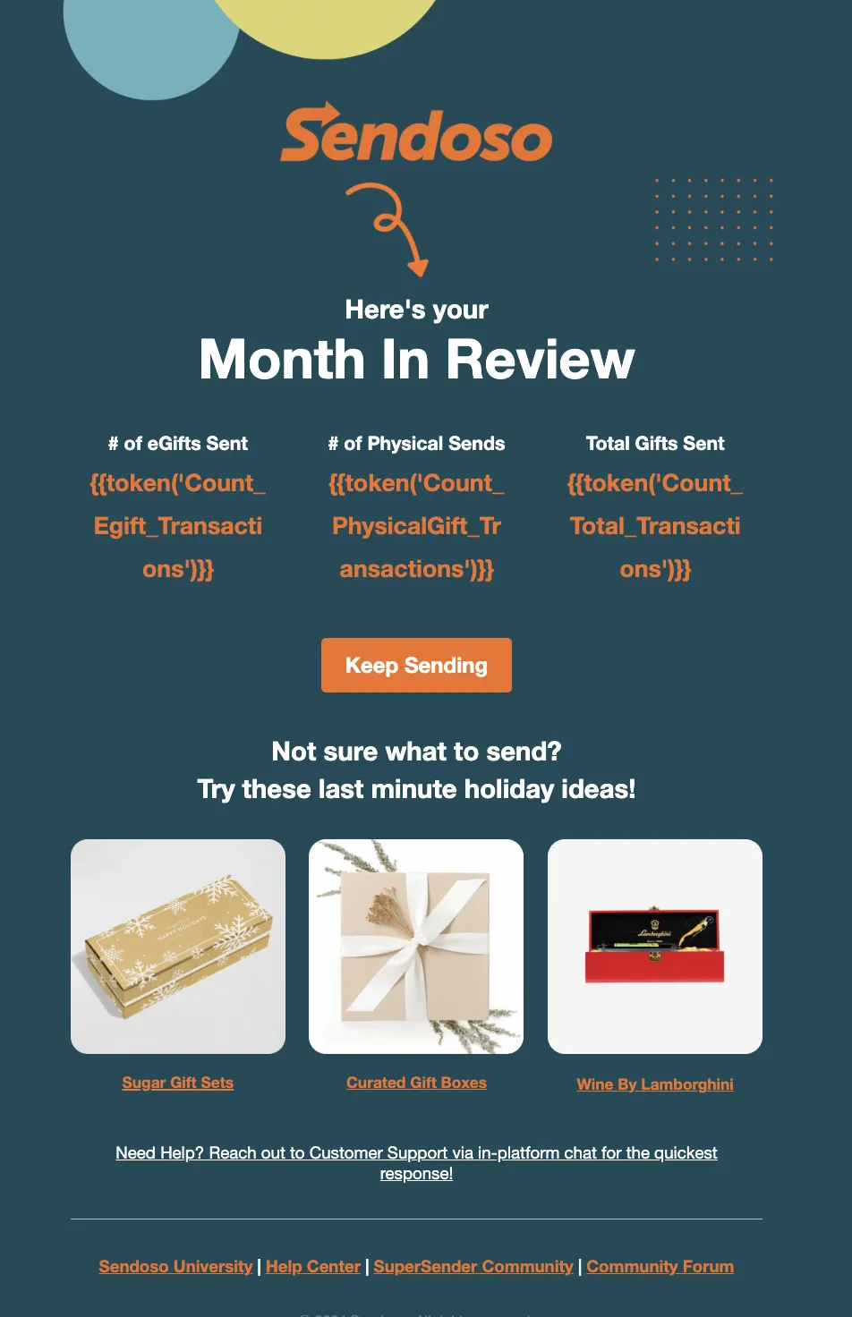 Welcome Emails with Education CTAs: Sendoso delivered role specific onboarding experiences, guiding users to Sendoso University for self-serve ramp-up.