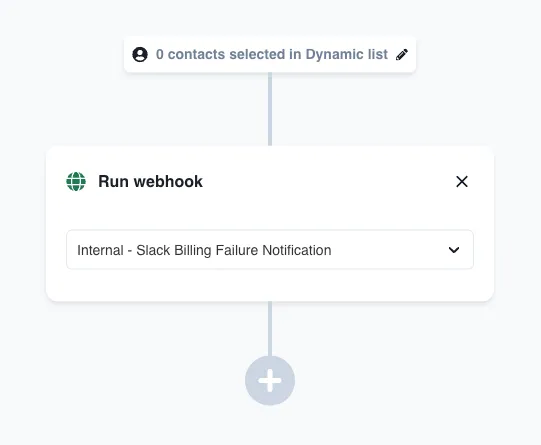 When you have the webhook ready, go to your campaign and just add Run webhook as a flow step like shown here. It can be the only flow step or part of a larger campaign flow that branches based on other actions