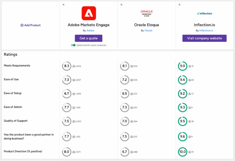 Below is how Inflection, Marketo, and Eloqua compare across the dimensions that matter most at enterprise scale.