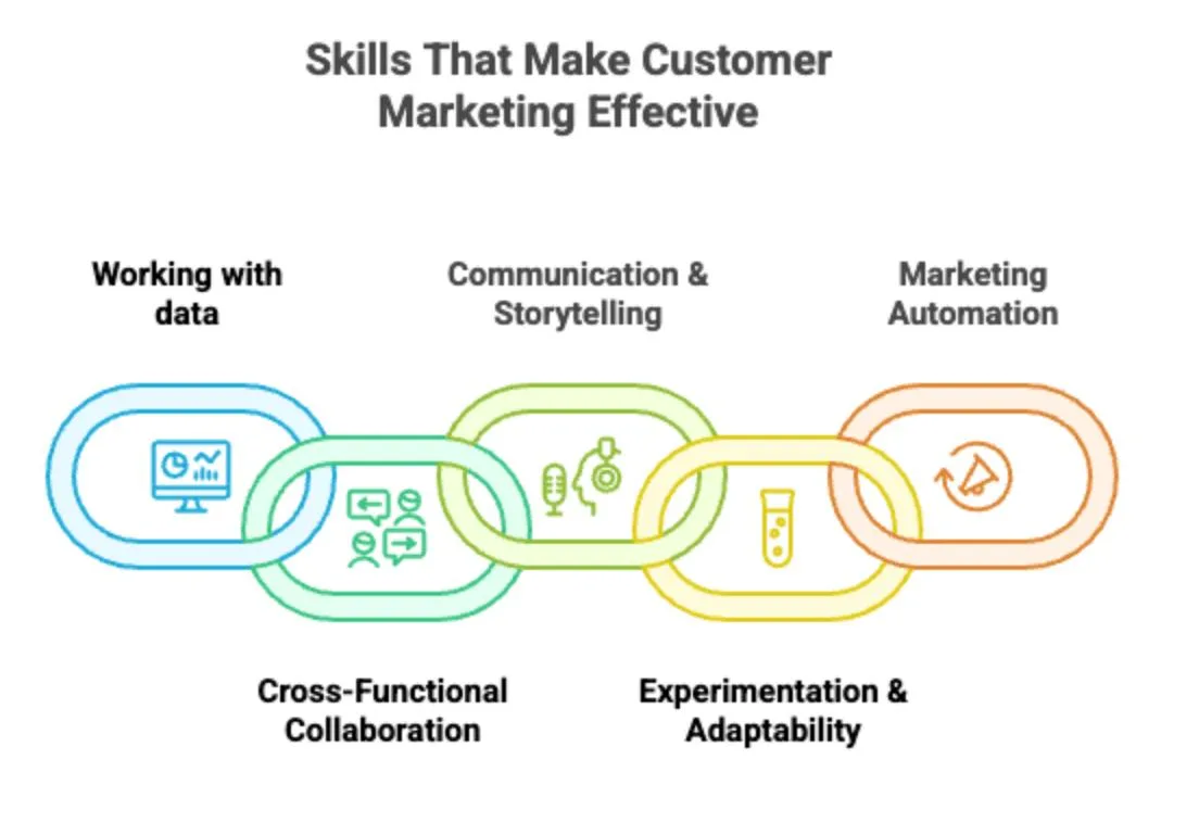 Being a newer marketing function, customer marketing draws talent from many backgrounds like customer success, content, product marketing, operations, each adding strengths in relationships, storytelling, or data. That diversity is part of what makes it such a dynamic and fast-growing discipline. What matters most is developing a mix of skills that allow you to design and run programs that create real impact for customers and for the business.