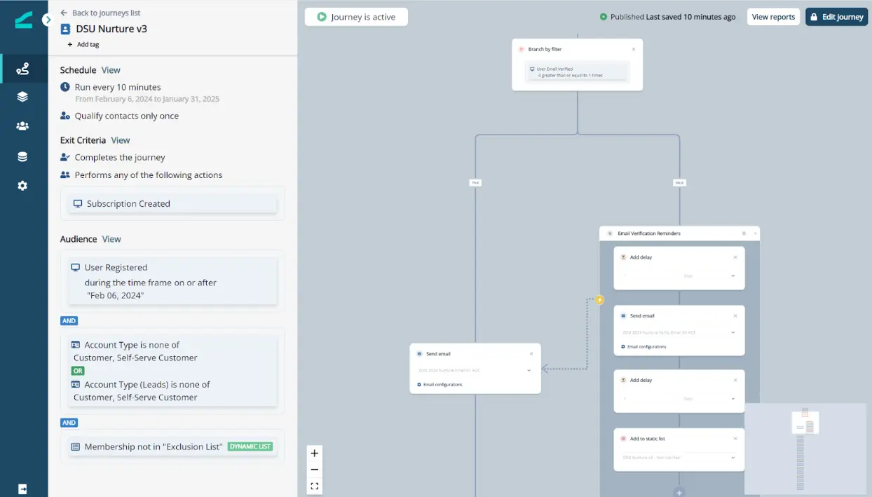 Nylas streamlined their user onboarding process by consolidating two journeys in Marketo into one nested journey in Inflection. This new journey managed multiple processes, enhancing user experience and reducing friction.