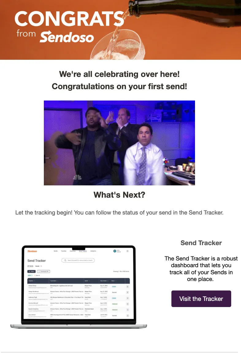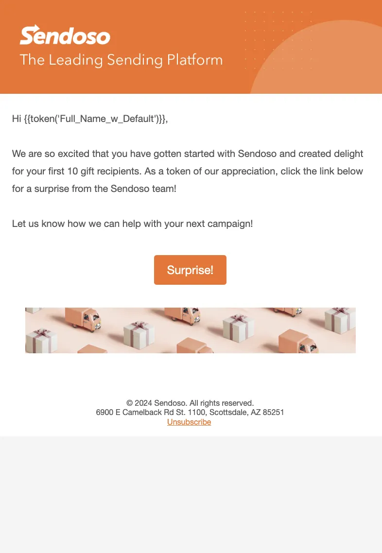 SuperSender Recognition: Sendoso surprised their power users with a gift upon their 10th send.