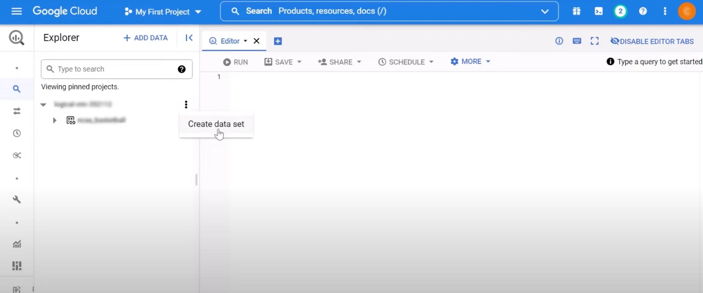 Inside the dataset, create a table with the appropriate schema to match the exported data.