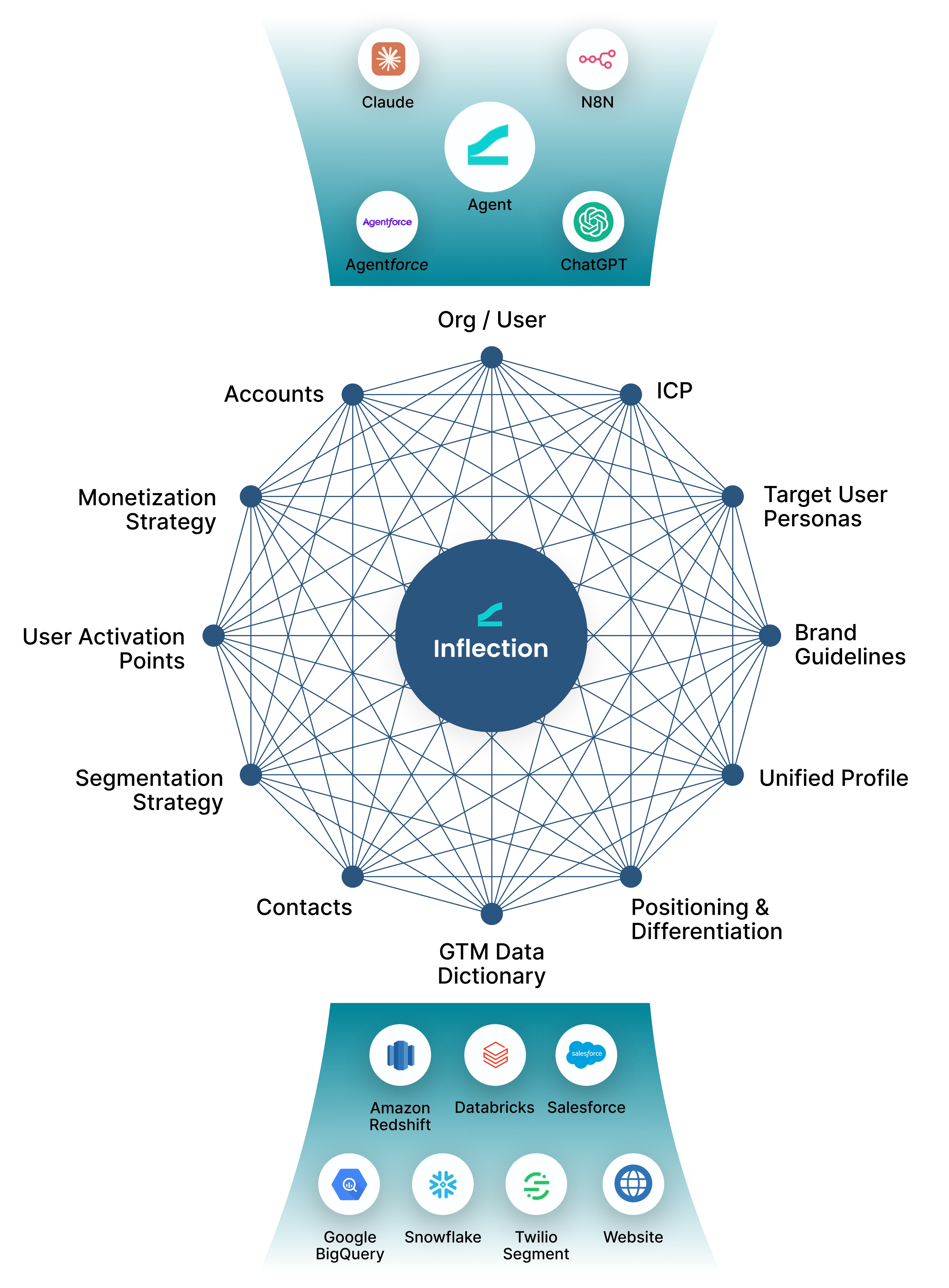 Inflection’s MCP server can turn a simple prompt into precise execution because of the ContextGraph™, the data intelligence layer that makes business information usable by AI models. ContextGraph™ maps how people, accounts, events, product usage, and marketing activity are connected inside your company. It organizes that data into a structure that the model can understand and reason over, which allows AI to act with context instead of guessing.