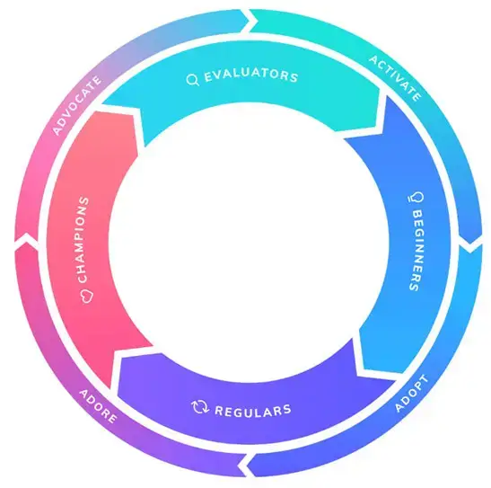 We all have slightly different stages in the customer’s journey. In a product-led flywheel, the user goes from beginner to product champion while they activate, adopt, adore, and advocate for it. The best-in-class marketing in all these stages is guided by compassion for the user's needs.