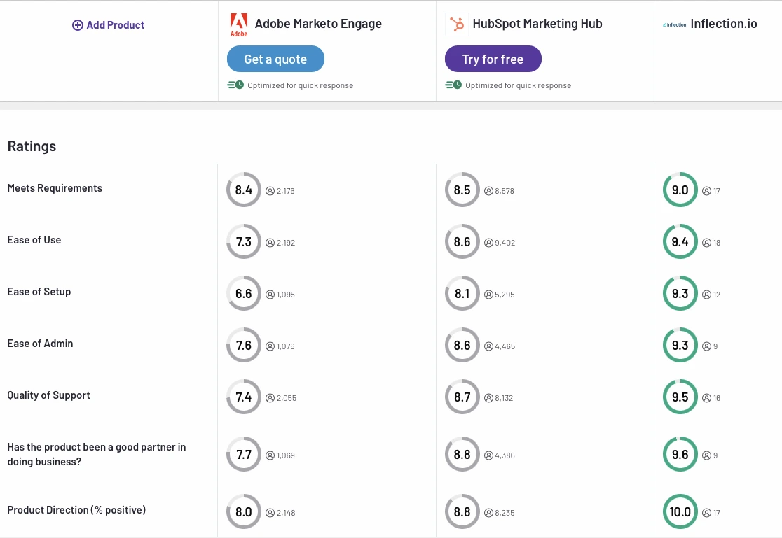 Both Marketo and HubSpot serve specific business needs effectively, with HubSpot excelling in ease of use and affordability for smaller teams, while Marketo delivers powerful features for enterprise-level marketing. However, for SaaS businesses prioritizing data-driven automation and future-ready solutions, Inflection emerges as a compelling alternative for Marketo and HubSpot.