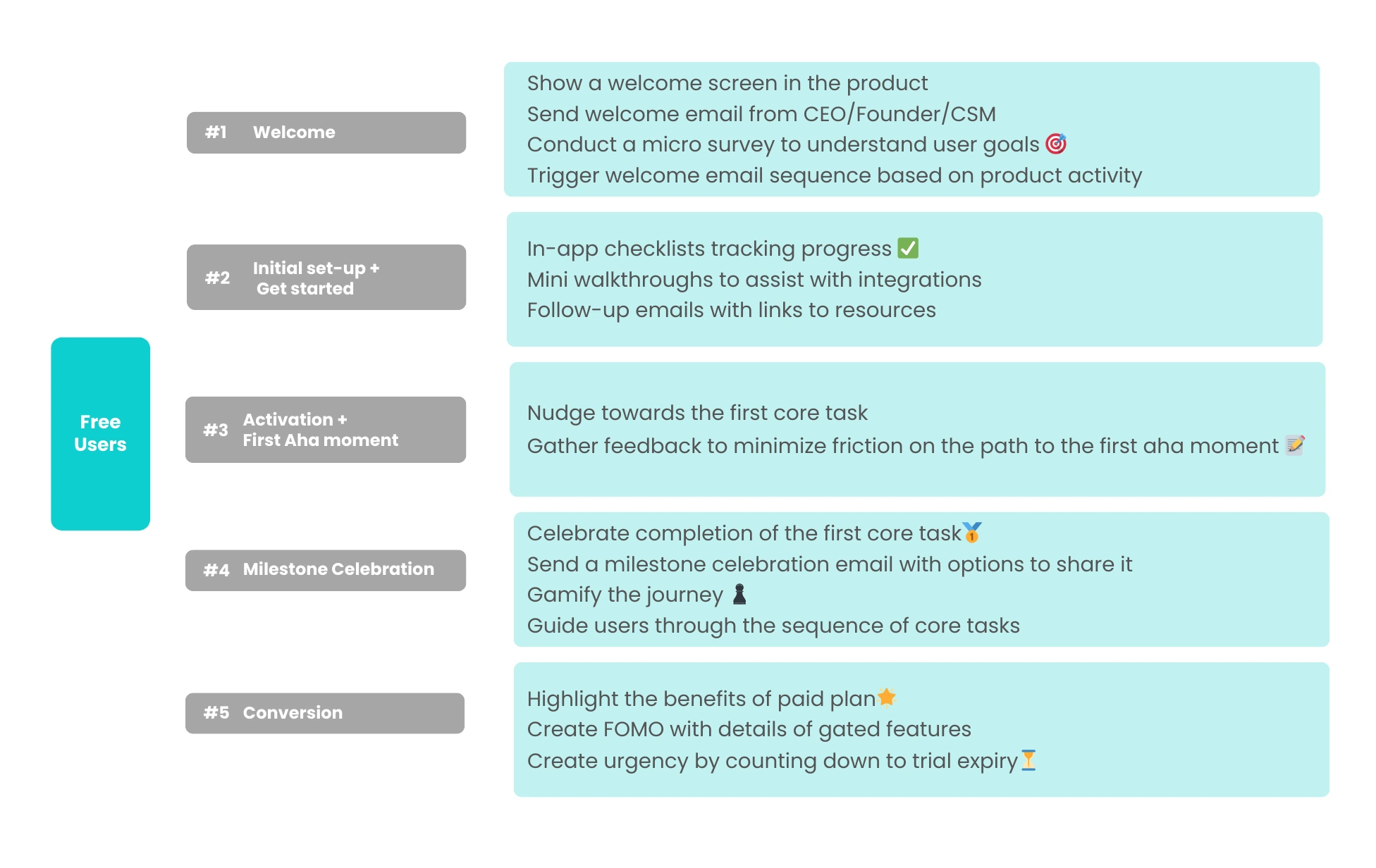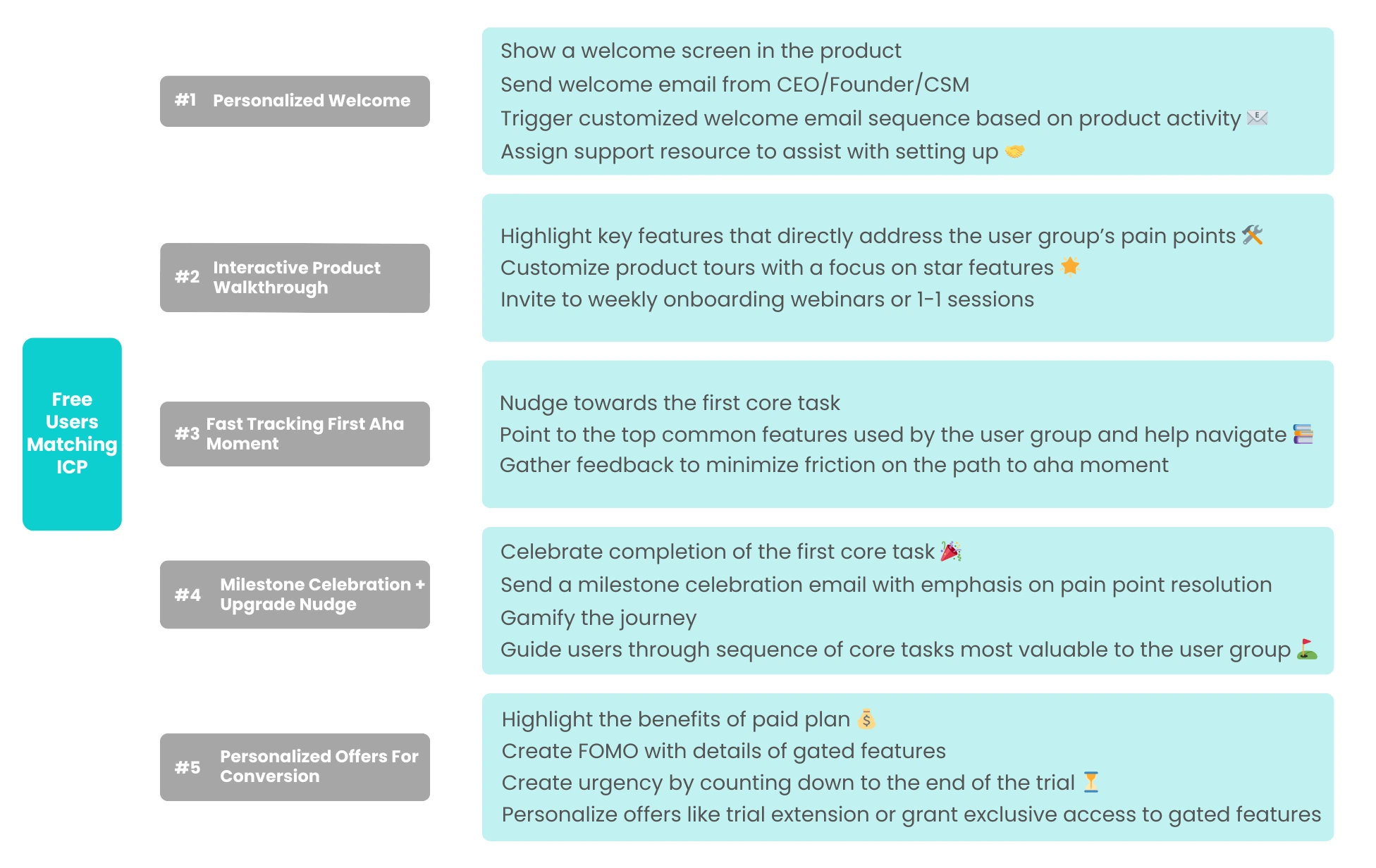 Recognizing the nuanced needs of free trial users, ICP free users, and paid customers is pivotal for sustained success. Tailoring onboarding experiences to align with each user segment ensures a more personalized and effective journey.