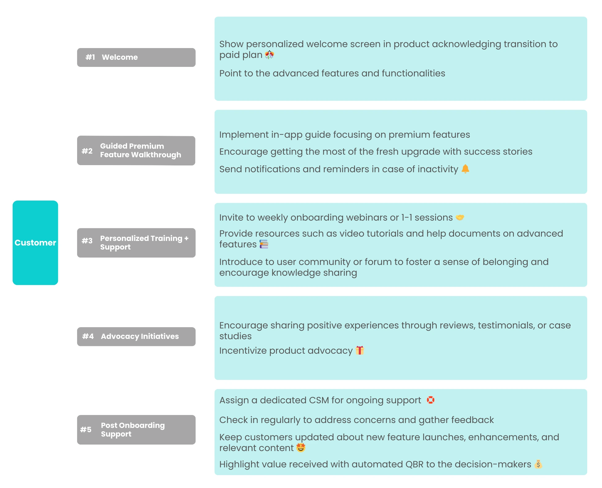 Conversion to paid customers doesn’t mean you ignore onboarding them. Customer onboarding marks a distinct phase where the goals shift from initial engagement to deeper product adoption, advocacy, and potential expansion revenue.