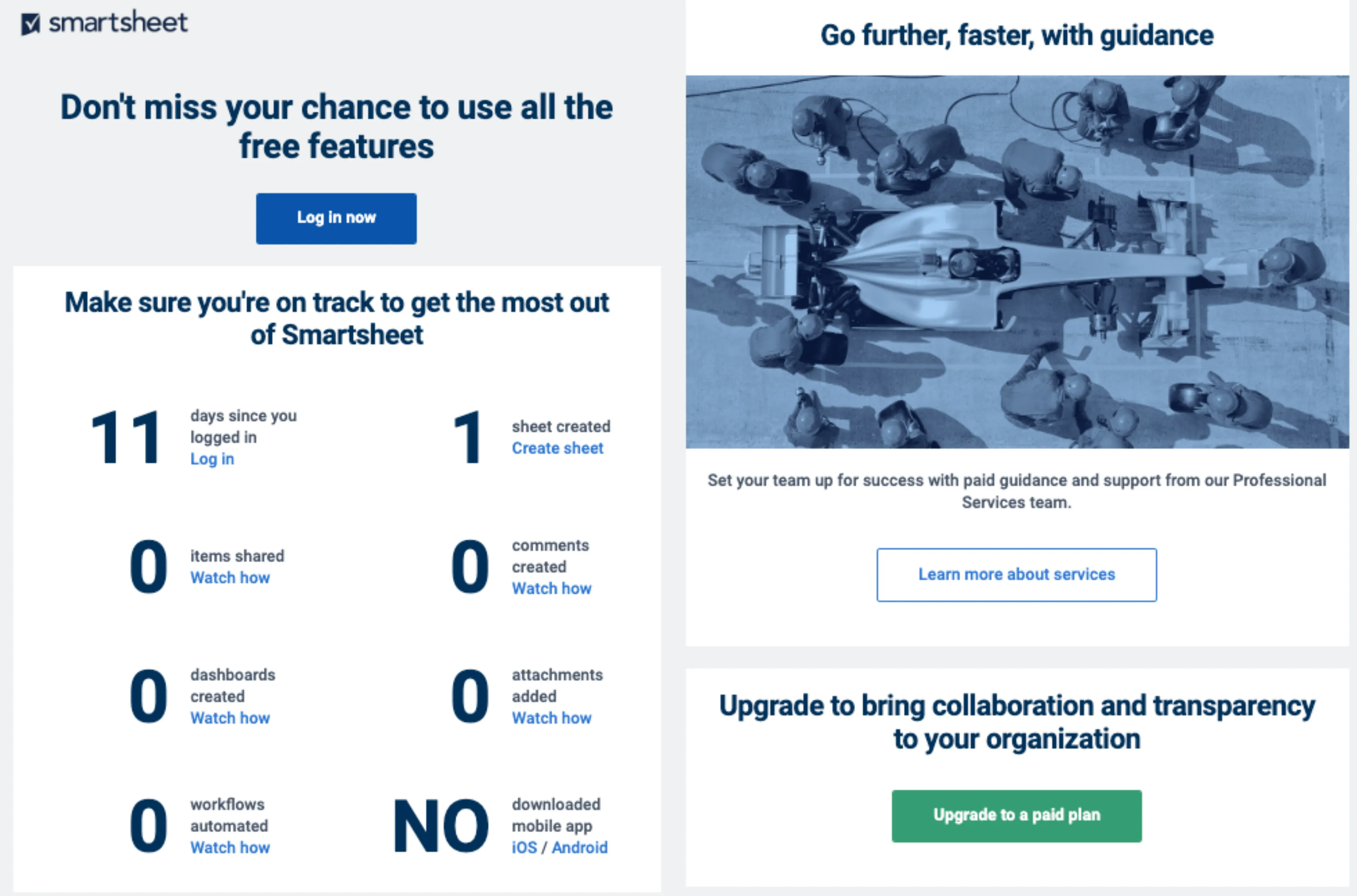 A summary of announcements, product news, and usage reports can easily become a boring newsletter-esque email that just delivers information to the customers. Use your recap emails wisely. Trigger an action from the user in the right direction.