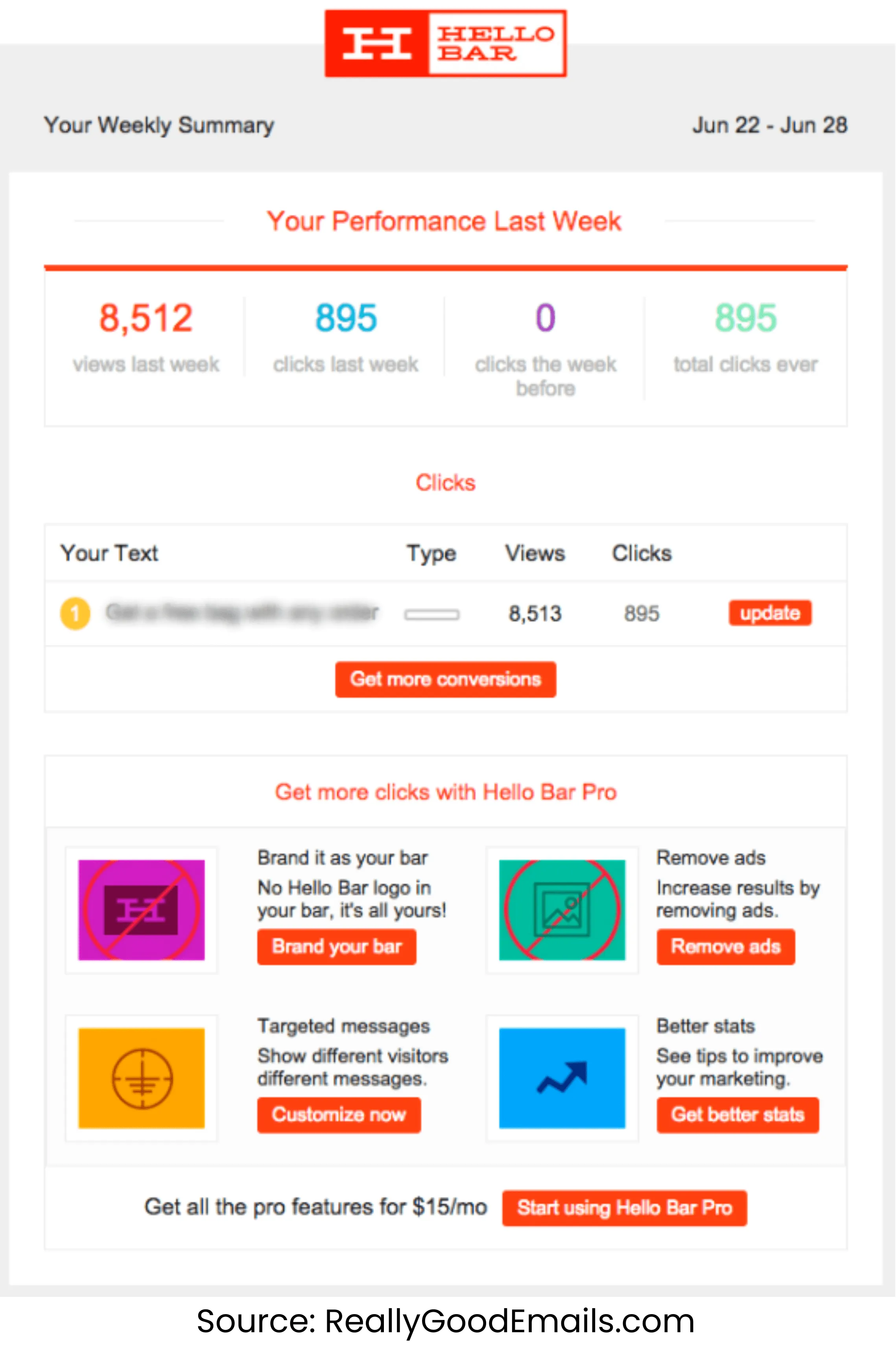 Product-led recap emails and newsletters can be great opportunities to show a summary of the value delivered by your product over time. The recap emails work in converting a free user as well as in persuading a paid customer to upgrade.