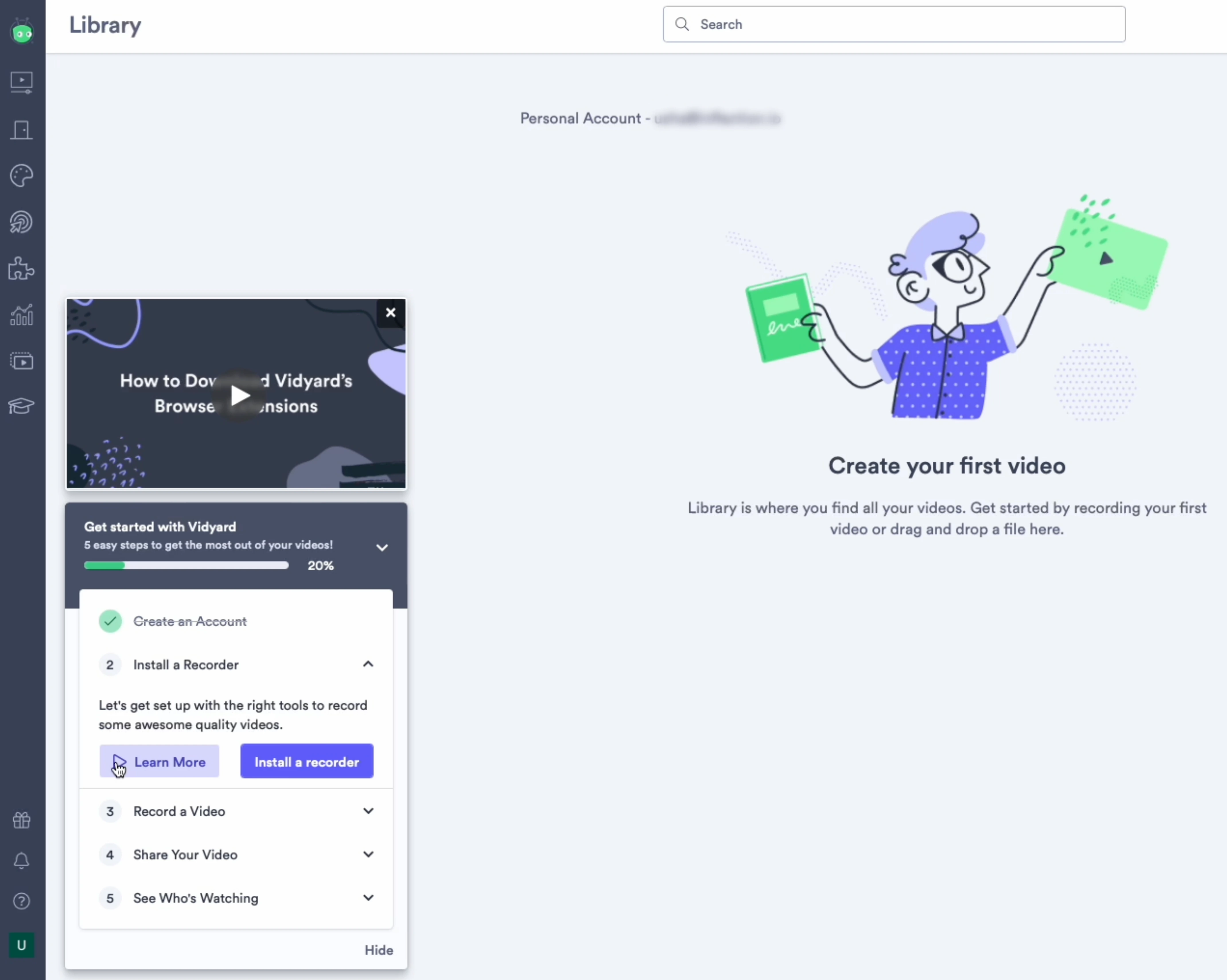 Implement an in-app navigation guide or a product tour for your new customers to start using your account. You can also consider using an onboarding checklist for your users to complete. Check out Vidyard’s example.