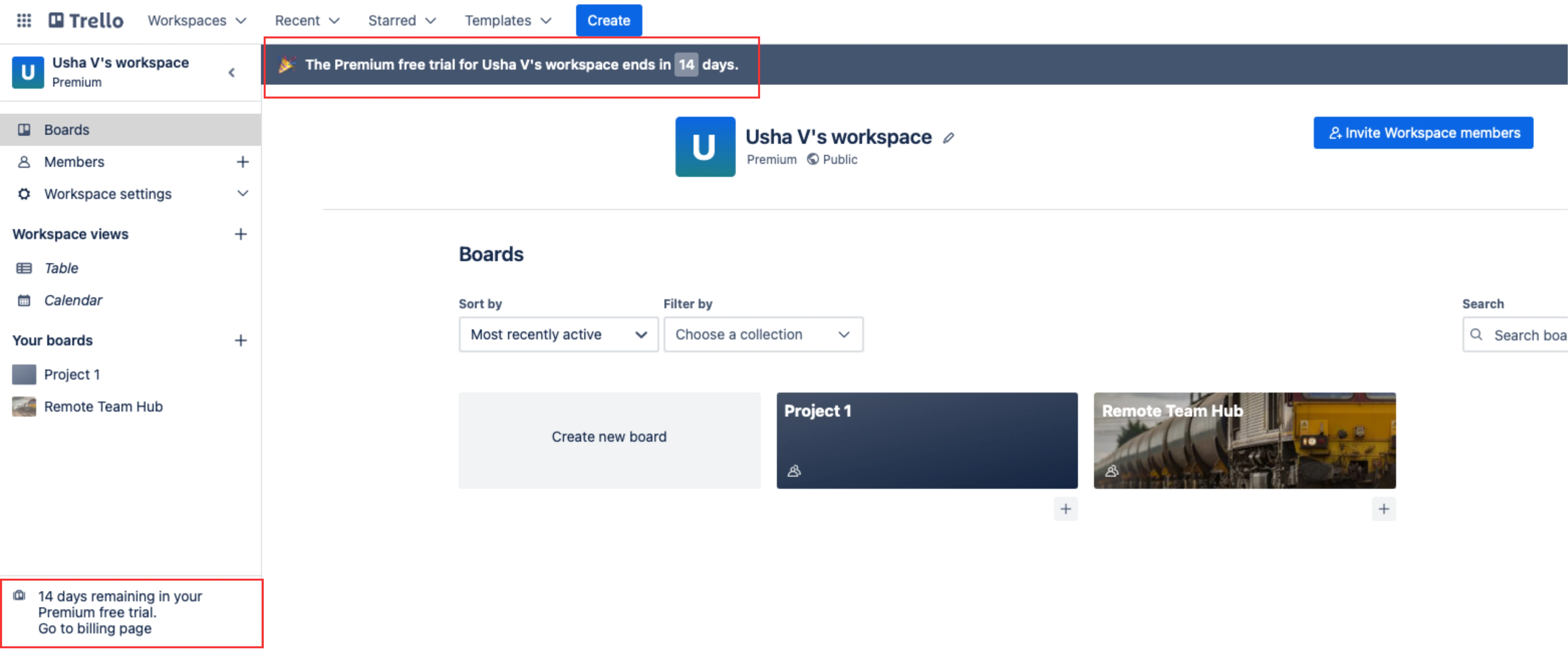 Don’t forget to show timely reminders about the remaining time on a trial plan both in-product and via email. Check out Trello’s example.