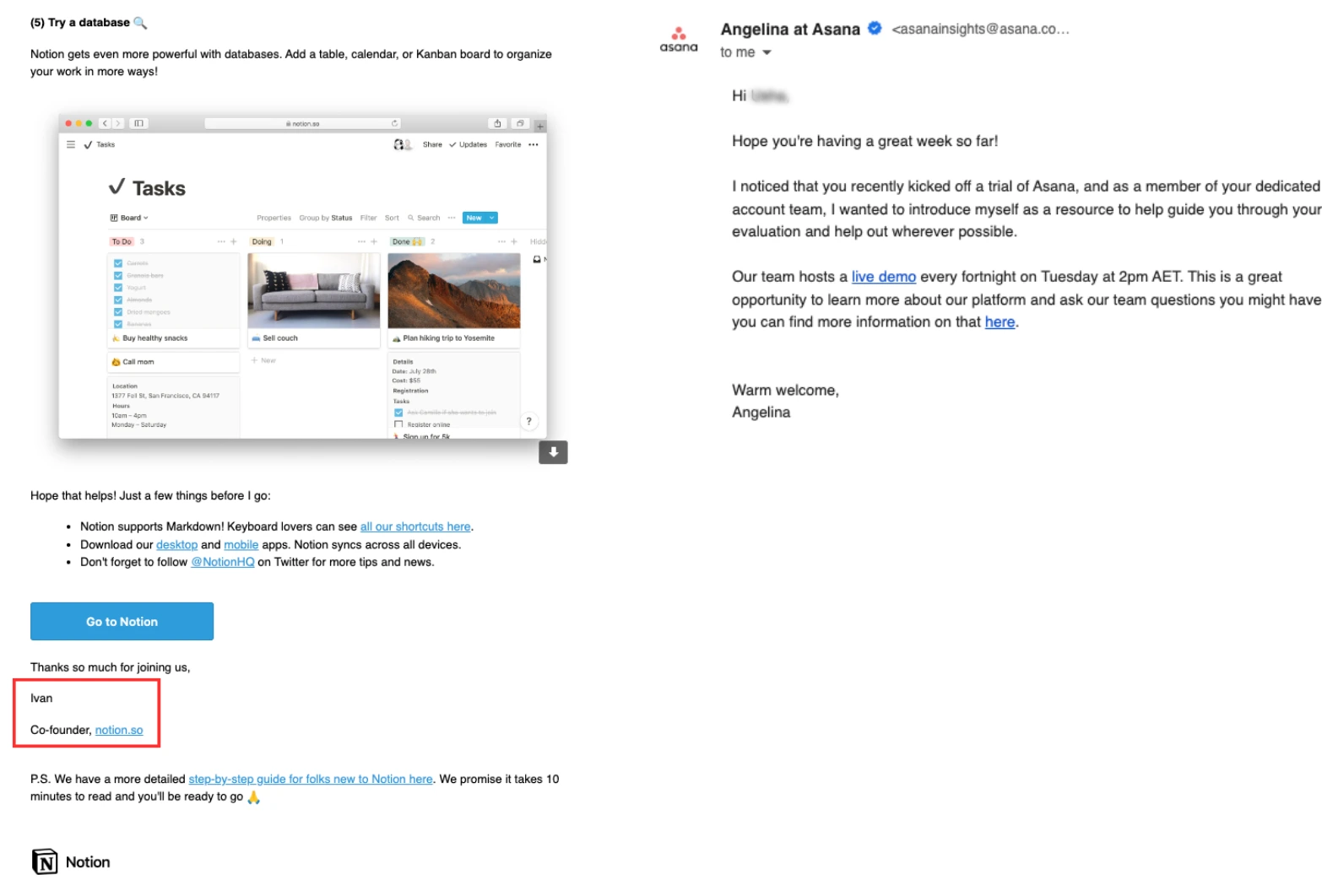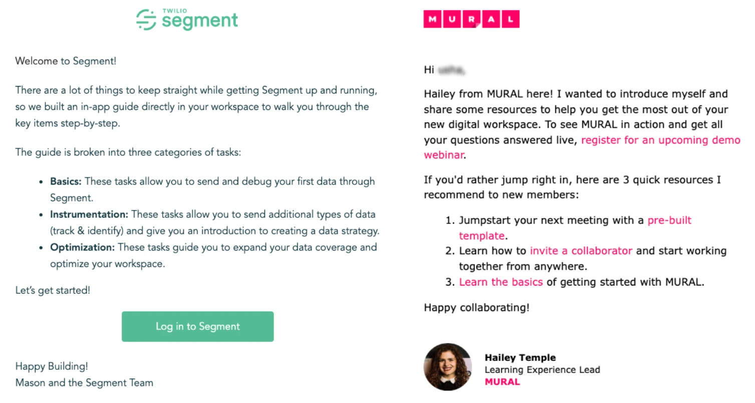 Personalized welcome from the CEO, co-founder, or customer success manager.