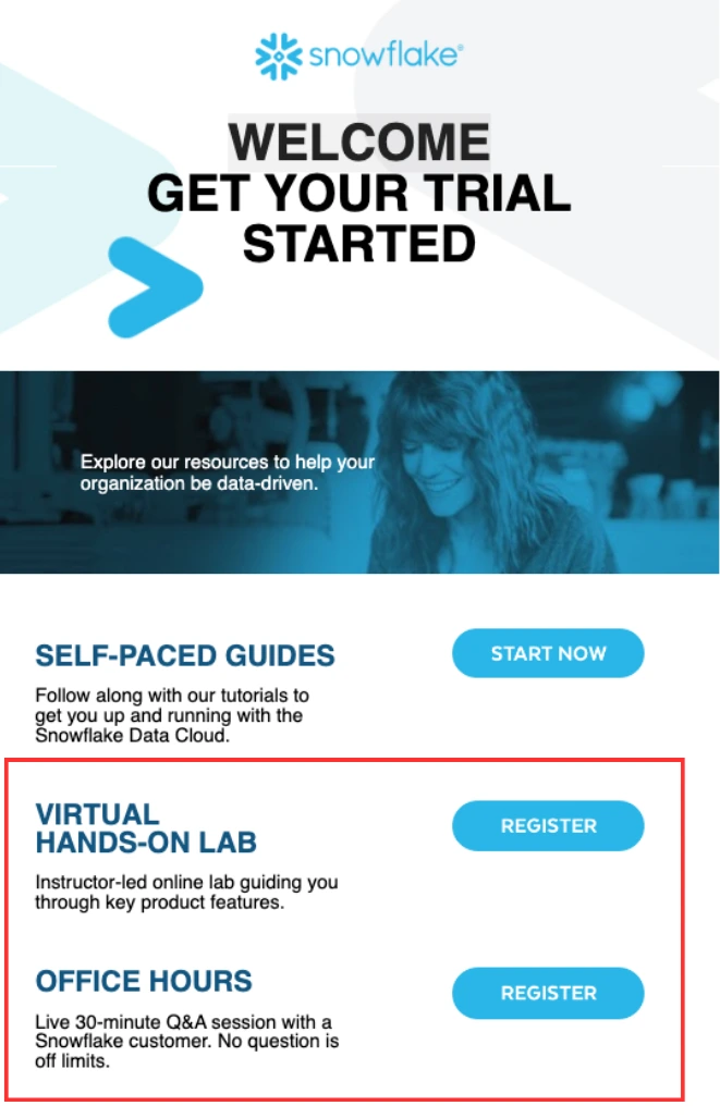 These hands-on experience invites are essentially personalized emails that can show how to achieve success quickly with your product.
